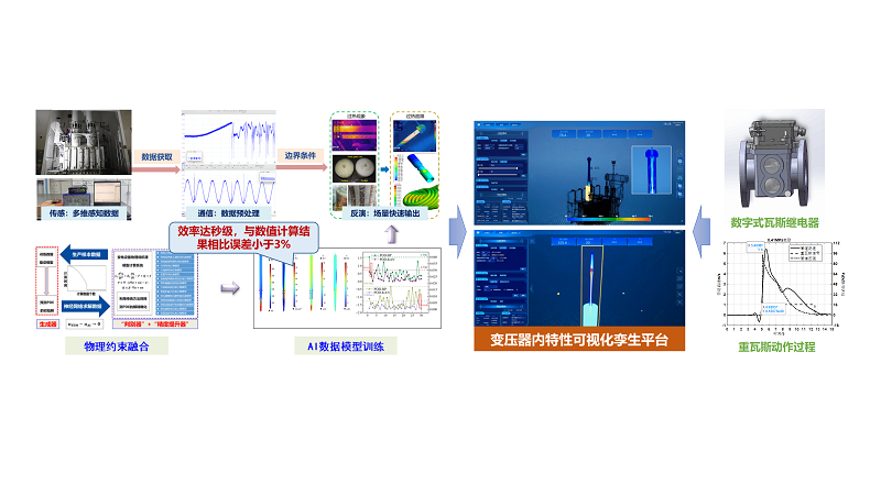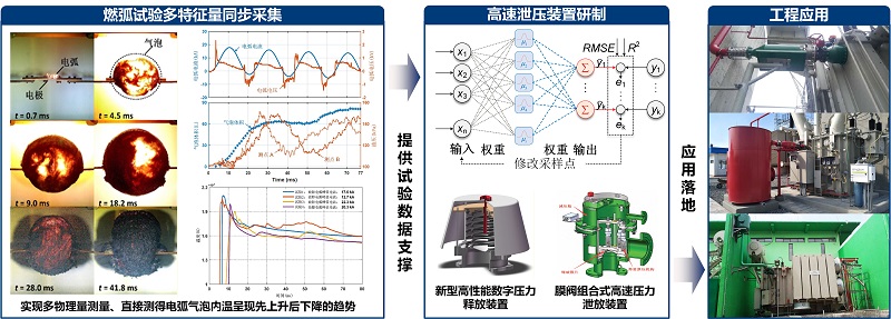 项目聚焦变压器安全运行和故障防御重大需求,采用“学-研-产-用”协同创新模式,从基础理论、软件研发、装备研制、一体化监测保护四个层面开展系统性研究,先后攻克了大型电力变压器燃弧故障演化过程精确建模与多物理场耦合求解技术,研发了适应变压器复杂结构和场量特征的电磁特性专用计算软件,研制了变压器高能燃弧试验检测技术及燃爆故障防御装备,创建了状态监测与非电量保护一体化的变压器多元数据可视化孪生平台,形成了精确建模理论、专用计算软件、高速泄压装置和多元数据孪生平台等系列自主创新成果。